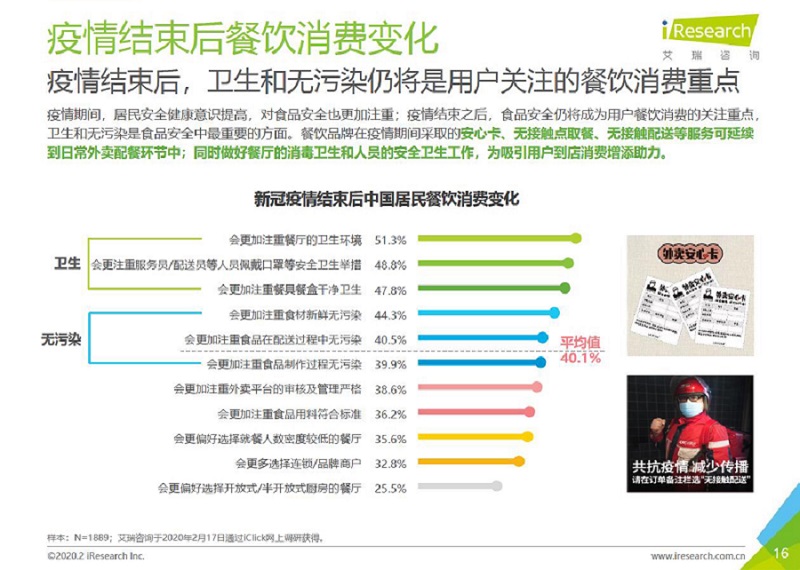 疫情結束后,衛生和無污染仍將是用戶關注的餐飲消費重點。