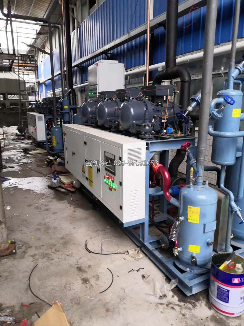 生鮮冷庫以水為基質在冬季以冰的形態體現出來,同時利用其凍結時釋放的大潛熱維持庫內果蔬不受凍害,夏季再以這些冰為冷源維持果蔬貯藏所必須的低溫高濕條件。
